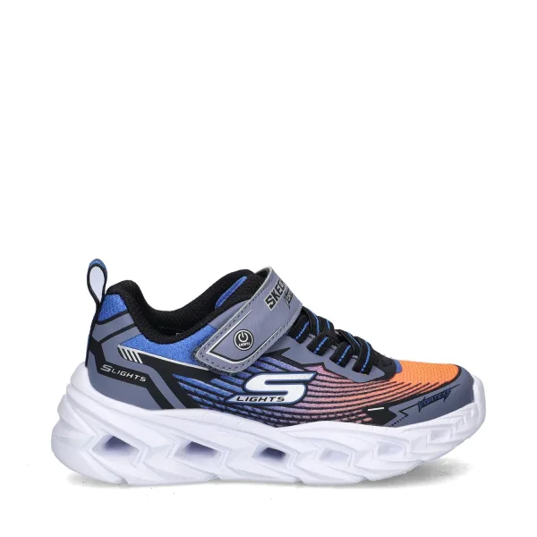 Skechers Vortex jongens sneaker Als je naar buiten wilt, is er natuurlijk geen tijd te verliezen. Daarom zijn deze klittenbandschoenen van Skechers ideaal! Uitgevoerd in textiel met versteviging om de neus, hiel en veteroogjes. Dankzij de Adoptive Closure heeft de schoen altijd een goede pasvorm. Gevoerd met zacht textiel en voorzien van een zacht hielkap voor meer comfort. Bevat een memoryfoam voetbed die optimale demping biedt en het draagplezier vergroot. Afgewerkt met een schokabsorberende loopzool die oplicht wanneer je loopt. Let op!! Het aan- en uitknopje voor de lichtje bevind zich op het klittenband.