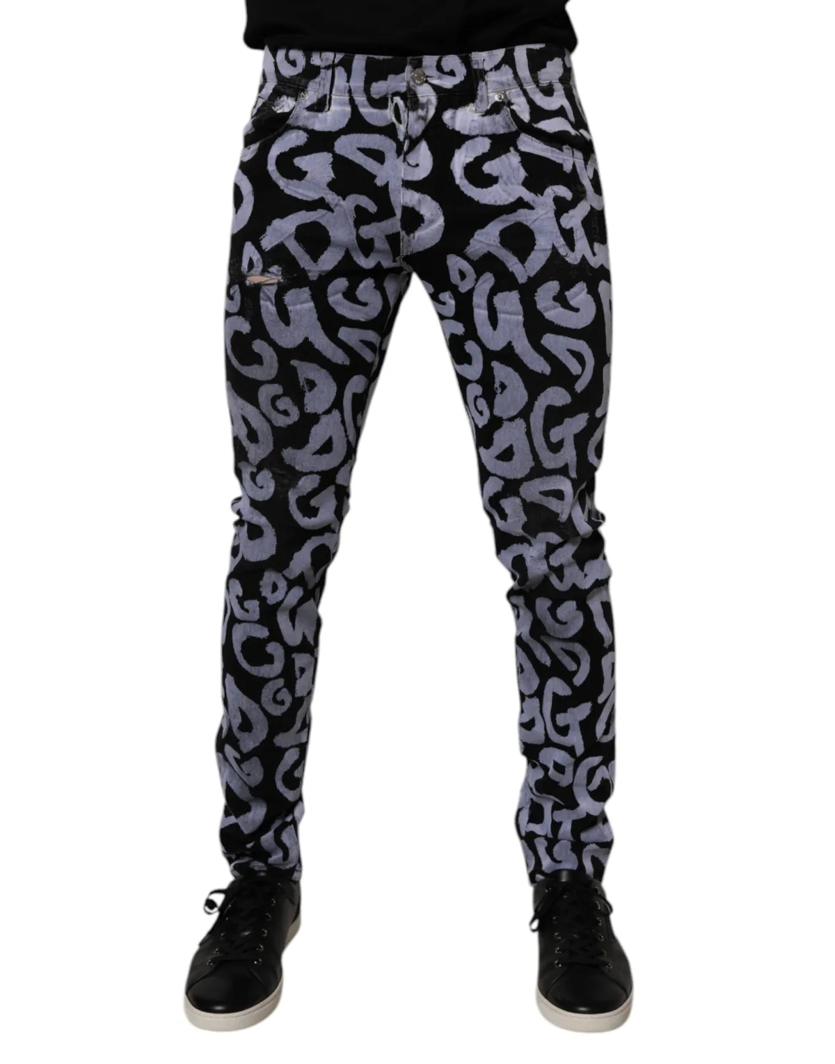 Stap naar buiten, val op en beheers de straten. Deze Dolce & Gabbana skinny jeans bieden ongeëvenaarde stijl en comfort de hele dag door. De gedurfde, door graffiti geïnspireerde print zorgt ervoor dat je de aandacht trekt en een statement maakt, waar je ook gaat. Ervaar een moderne uitstraling met een comfortabele skinny pasvorm en versleten details. Gemaakt van een hoogwaardige katoenmix denim, bieden deze jeans de perfecte balans tussen stijl en comfort. Geniet van duurzame draagkracht die meegaat met je dagelijkse avonturen. Perfect om een edgy tintje toe te voegen aan casual uitjes of je avondlook te verbeteren.