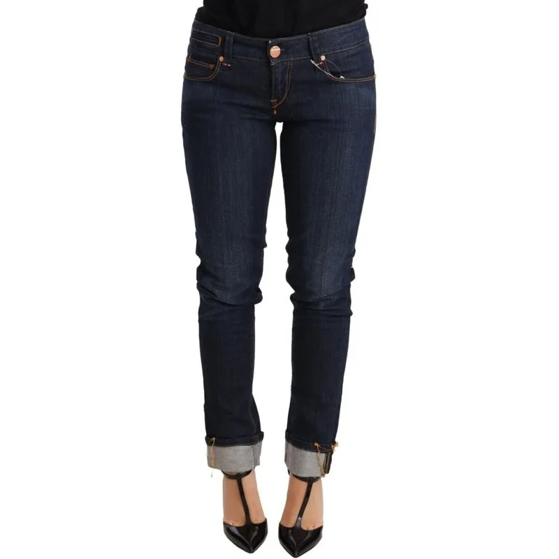 Omarm, vorm en loop in deze essentiële low-waist skinny denim jeans. Jouw ultieme garderobe-musthave voor moeiteloze chic, ze beloven een flatterende, comfortabele pasvorm die met je meebeweegt. Gemaakt van een zachte katoenmix, beschikken deze donker gewaste jeans over een klassieke vijf-pocket ontwerp voor praktische gebruik, terwijl de opgerolde enkels een moderne touch toevoegen. De donkerblauwe kleur en subtiele versleten details zorgen voor een trendsettende uitstraling. Perfect voor casual dagelijks gebruik, deze veelzijdige jeans maken moeiteloos de overgang van dag naar nacht en worden jouw favoriet voor blijvende stijl.