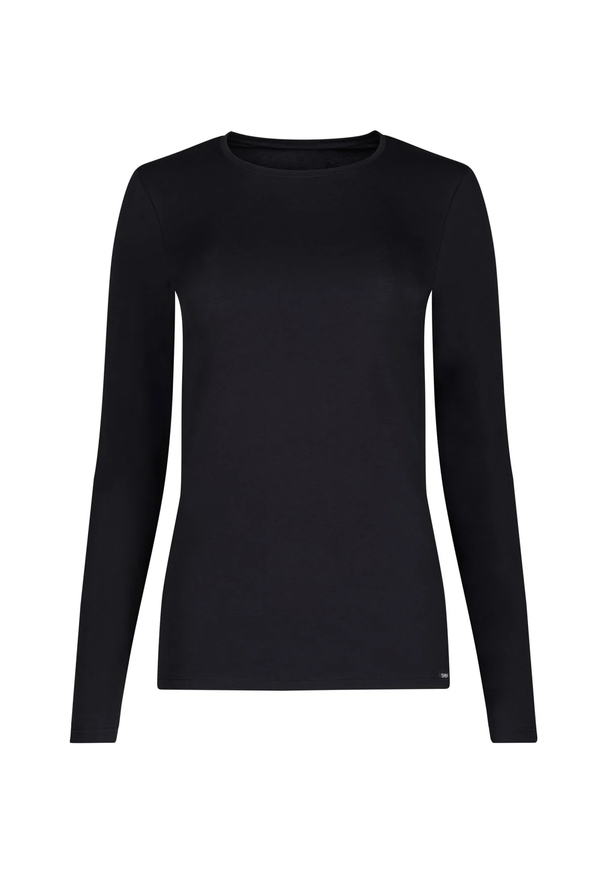 Eenvoudig basis shirt voor dames van het merk Skiny. Getailleerd met een ronde hals. Langsleeve shirt met klein logo op de zijkant. Comfortable katoenmix.