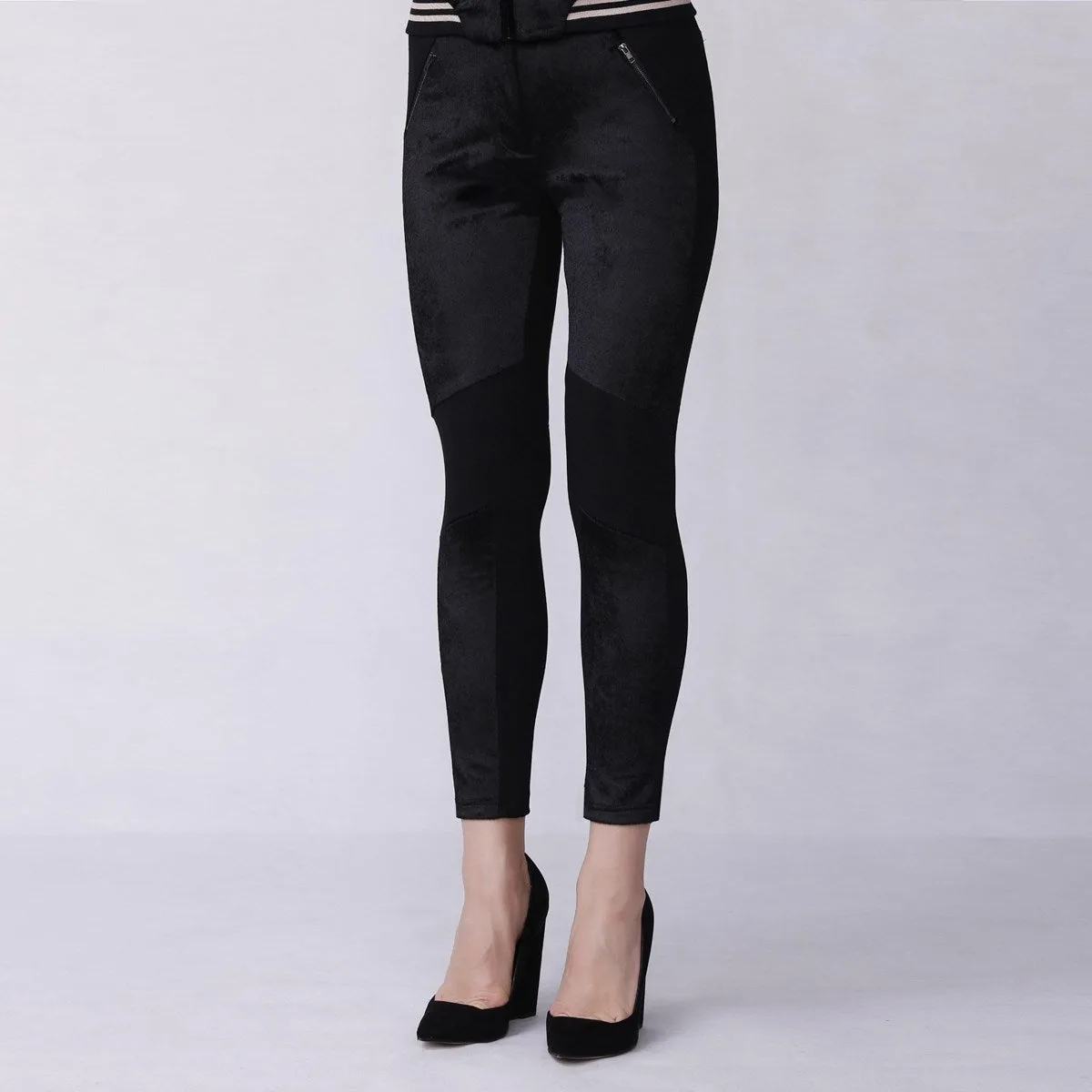 Een paar zeer getailleerde leggings met een originele snit die een Milano -trui en valse paardenhaar -stoffenpanelen mengt. Twee ritszakken. Een statement -stuk dat gemakkelijk kan worden geëvenaard met blouses, shirts en lange of korte jassen of met onze "Velvet jas en geborduurde mouwen". Productdetails: Vlieg en haken midden vooraan Lengte: 77 cm/ Het model meet 1m77 en heeft een maat 38