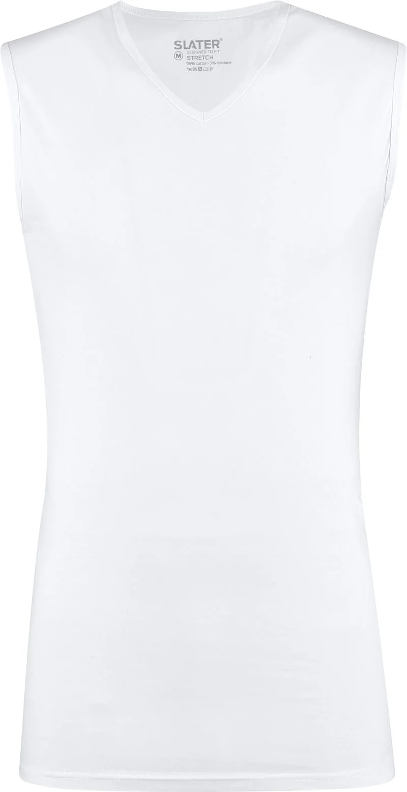 - Bij nieuwnieuw.com kun je Slater Stretch 1-pack Mouwloos T-shirt V-hals Wit XXL kopen voor slechts €15,96 , dat is 20% goedkoper dan bij Suitableshop (€19,95).