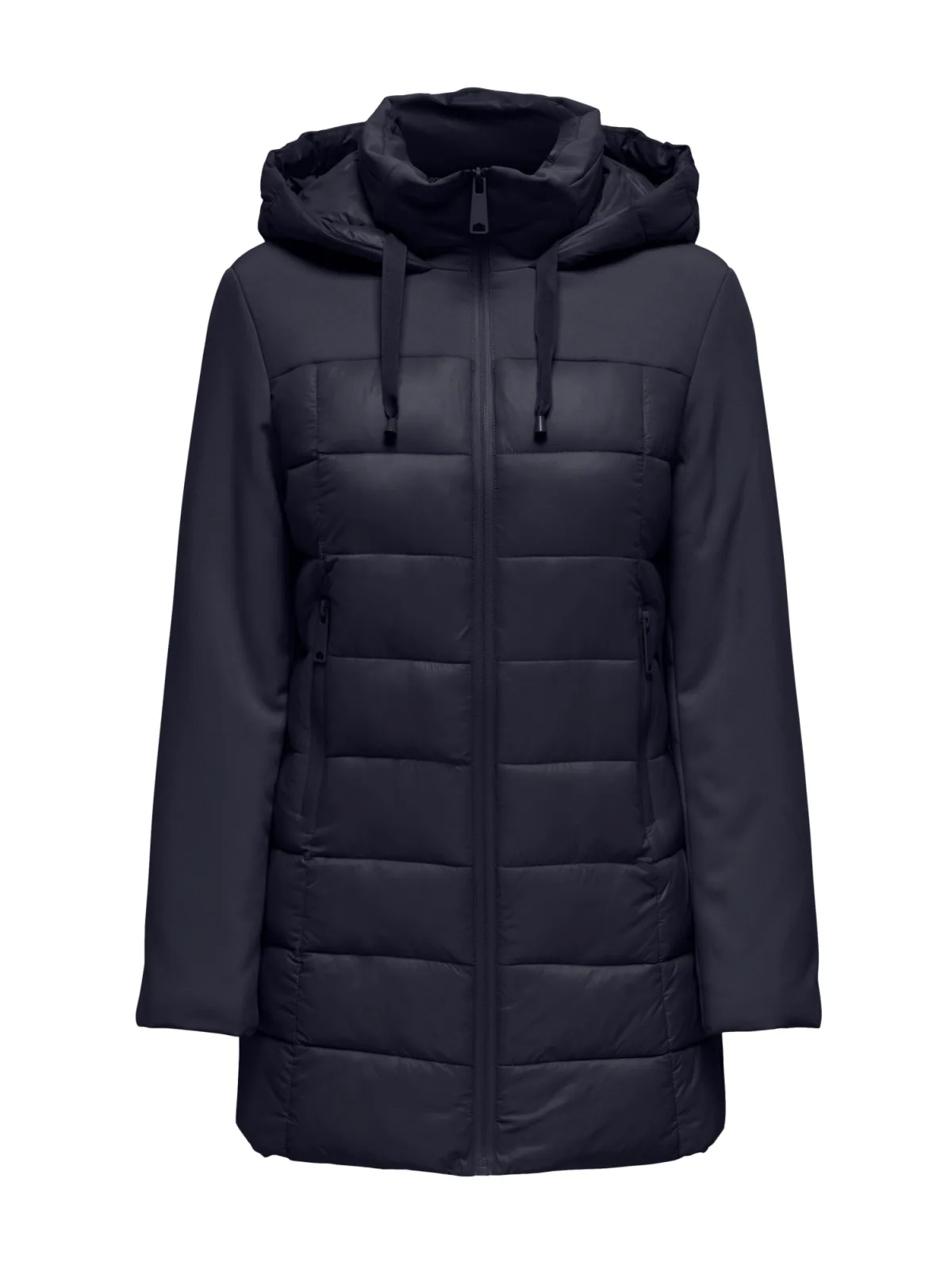 Wil je warmte zonder in te boeten op stijl? Deze dames gewatteerde jas in moderne materiaalmix houdt je betrouwbaar warm en ziet er bovendien geweldig uit. De capuchon met trekkoord beschermt je tegen wind en weer. Een binnenkraag die hoog sluit zorgt voor extra warmte op koude dagen. Dankzij de doorlopende rits ben je razendsnel startklaar. Praktische voorzakken met rits zorgen voor een veilige opbergruimte voor je telefoon, sleutels of handschoenen. De warme voering biedt comfort zelfs bij vrieskou. De winddichte afwerking laat de kou geen kans. Het zachte materiaal zorgt ervoor dat je je helemaal op je gemak voelt. Of je nu in de stad bent of buiten, deze jas past bij elke look. Jij gaat naar buiten, zij houdt je warm en stijlvol.