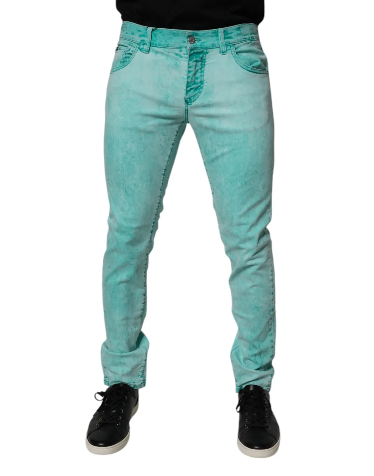 Stap naar buiten, val op en maak een statement. Deze Dolce & Gabbana jeans bieden een slanke silhouet en ongeëvenaard comfort. Gemaakt van een premium katoenmix denim, bieden ze een superieure pasvorm die met je meebeweegt. De klassieke vijf-pocket stijl zorgt voor praktische bruikbaarheid dagelijks, terwijl de lichtteal acid wash ervoor zorgt dat je de aandacht trekt. Geniet van een veilige en comfortabele pasvorm met de rits en knoopsluiting. Deze jeans zijn jouw go-to voor moeiteloze stijl, perfect voor het verhogen van elke casual gelegenheid. Ervaar duurzame kwaliteit en blijvende stijl.