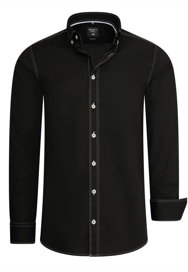 Slim fit overhemd met lange mouwen en contrasterende stiksels