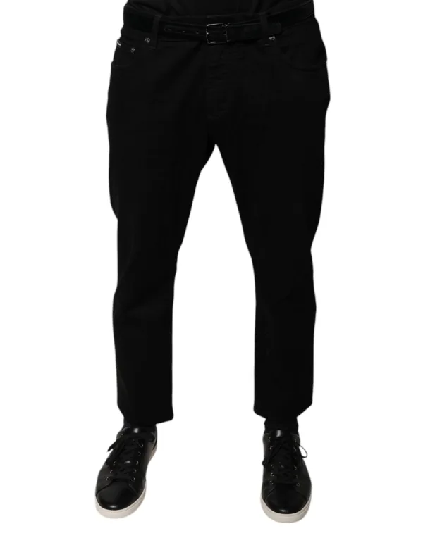 Stap naar voren, onderscheid je en bezit je stijl. Deze Dolce & Gabbana slim-fit jeans bieden moeiteloze verfijning voor je dagelijkse look. Gemaakt van een comfortabele katoenmix, bieden ze een superieure pasvorm die met je meebeweegt. Het klassieke vijf-pocket ontwerp zorgt voor functionaliteit, terwijl de zwarte kleur maximale veelzijdigheid garandeert. Ervaar het hele dag comfort in een stijlvolle silhouet. Geniet van duurzame, onderhoudsarme draagbaarheid die lang meegaat. Perfect om je outfit op te fleuren of juist casual te houden, deze jeans passen naadloos in elke moderne garderobe, van casual uitjes tot avondbijeenkomsten.