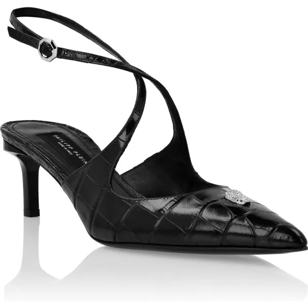Crocco reliëf Show your fashionable side with these leather strap pumps. Check out the details. Croco-print leather upper Toe cap with bejewelled Skull Crossing buckled strap Genuine leather sole Inner lining 5,5 cm lined heel