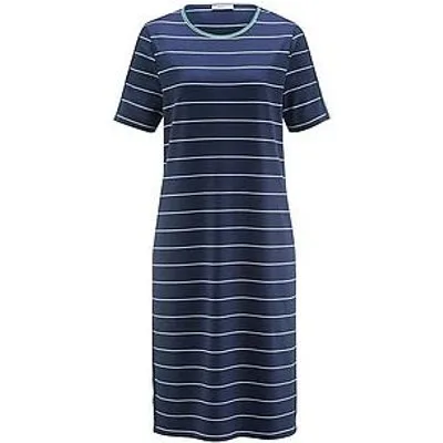 Slip-on jersey jurk van PETER HAHN met een ronde halslijn en contrasterende strepen op de 1/2 mouw. Helemaal ongecompliceerd en helemaal comfortabel in gestreepte jersey van 95% viscose, 5% elastaan. Geappliqueerde gebreide strepen langs de zijnaden zorgen voor een figuurflatterend effect. Gecertificeerd volgens Standard 100 van OEKO-TEX®. Lengte ca. 100 cm. Deze tricot jurk is machinewasbaar. fijnwas tot 30°. chloorbleken niet mogelijk. koud strijken. niet chemisch te reinigen. drogen in de droger niet mogelijk. 36, 40