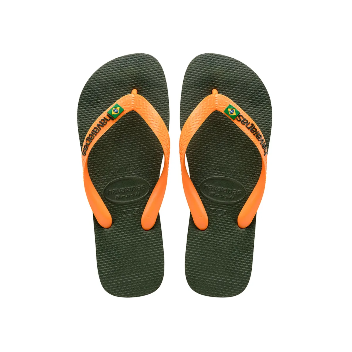 Havaianas Brasil Logo Unisex Slippers Green OliveVibrant Orange