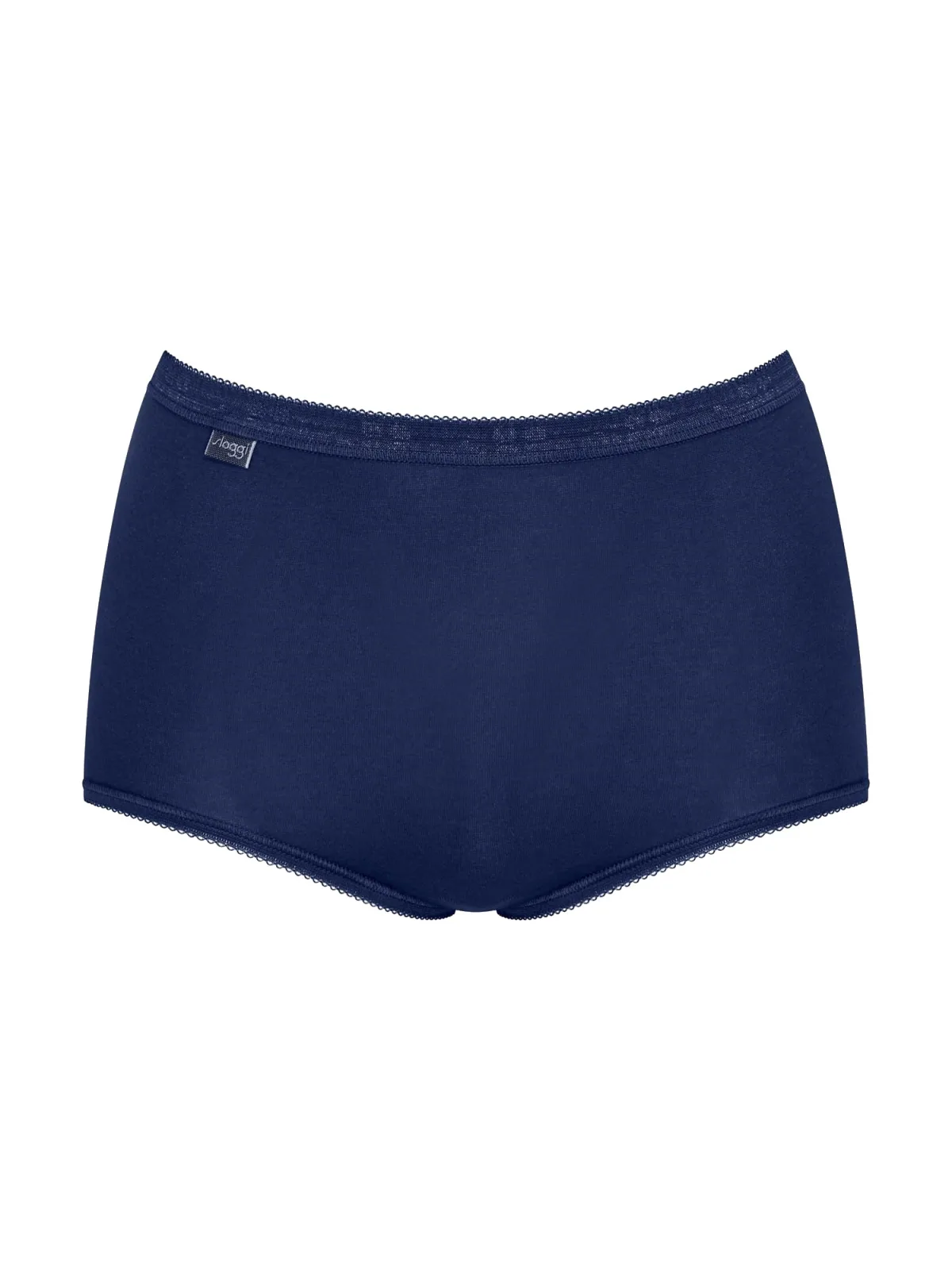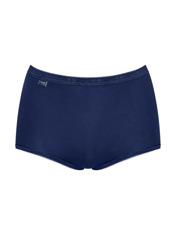 Deze dames maxislip combineert aangenaam comfort met vrouwelijke details. Hij is gemaakt van zacht stretchkatoen, past perfect en is de hele dag comfortabel om te dragen. De hoge tailleband en de elastische tailleband zorgen voor een comfortabele en stevige pasvorm. Een geweven label op de tailleband en de subtiele zoom met kanten rand geven de slip een elegante touch. Ze zijn verkrijgbaar in een praktisch drie-pack en in verschillende kleuren om variatie toe te voegen aan je ondergoedcollectie. Ideaal voor vrouwen die stijl en functionaliteit even belangrijk vinden. Perfect voor dagelijks gebruik en altijd comfortabel en stijlvol.