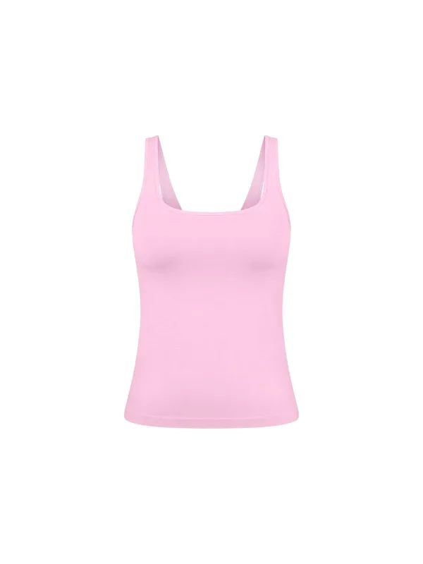 Design: Gevoerde zoom/rand; Materiaal: Jersey; Halstype: Carréhals; Motief: Effen; Soort bandjes: Normale bandjes; Extra's: Op staal naden, Naadloos; Pasvorm: Slanke pasvorm; Armlengte: Mouwloos; Lengte: Normale lengte
