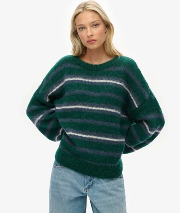 Slouchy Gestreepte Gebreide Trui Green