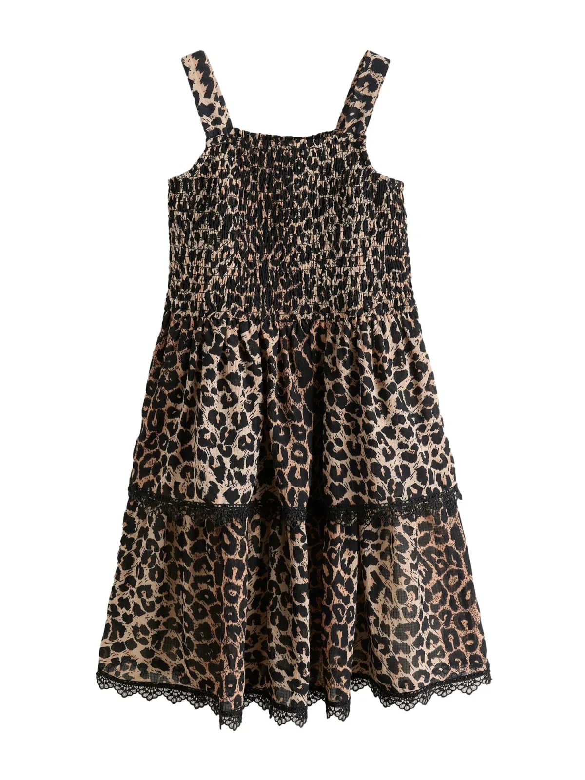 Design: Elastische inzetstukken; Halstype: Carréhals; Motief: Dierenprint; Soort bandjes: Normale bandjes; Details: Kant, Volant, Gedrapeerd; Extra's: All-over patroon; Lengte: 3/4 lengte; Pasvorm: Normale pasvorm; Armlengte: Mouwloos