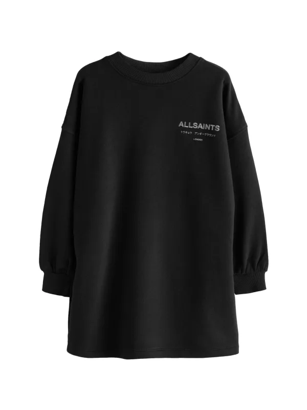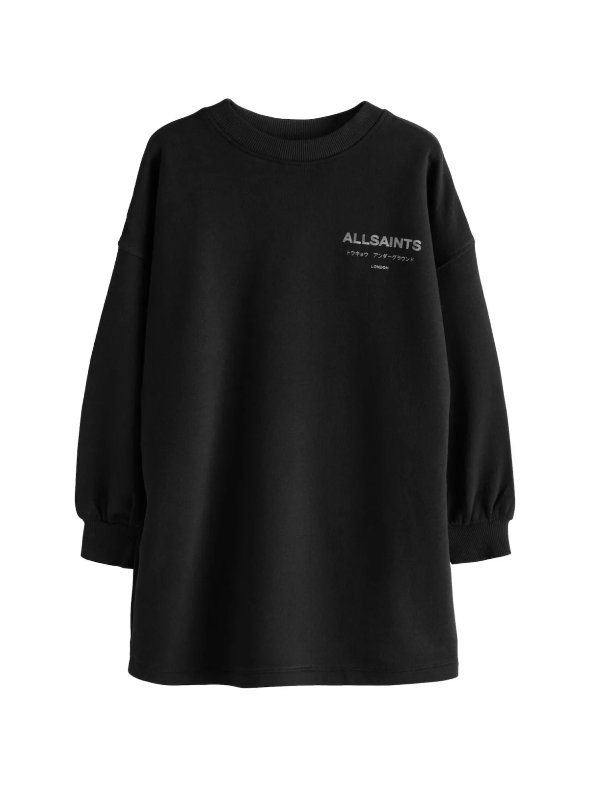 Design: Geribbelde kraag; Type sluiting: Slip; Materiaal: Sweatstof; Halstype: Ronde hals; Motief: Logoprint; Details: Plissé; Extra's: Voelt zacht aan, Label print; Lengte: Knielengte; Pasvorm: Losse pasvorm; Armlengte: Lange mouw
