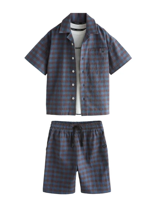Design: Elastische taille/zoom, Knop placket, Oversized, Borstzak, Knop sluiting; Materiaal: Katoen; Motief: Geruit; Extra's: Voelt zacht aan; Aantal per set: 3-delig; Lengte: Kort/mini; Setinhalt Kleidung: Hemd, Shirt, Hose; Armlengte: Halve mouw