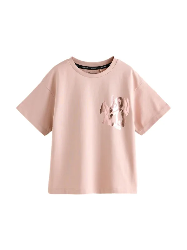 Design: Geribbelde kraag, Oversized, Overcut schouder, Nektape; Materiaal: Jersey; Halstype: Ronde hals; Motief: Logoprint; Extra's: Glanzend, Voelt zacht aan; Pasvorm: Losse pasvorm; Armlengte: Kwartmouw; Lengte: Normale lengte