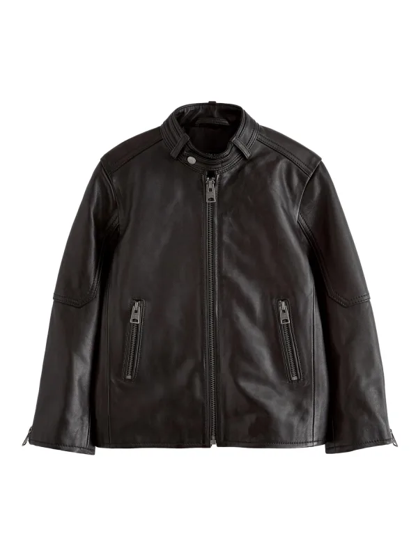 Design: Staande kraag; Type sluiting: Ritssluiting; Type jas: Bikerjack; Voering: Licht gevoerd; Materiaal: Leer; Motief: Effen; Extra's: Leer met fijne poriën; Pasvorm: Normale pasvorm