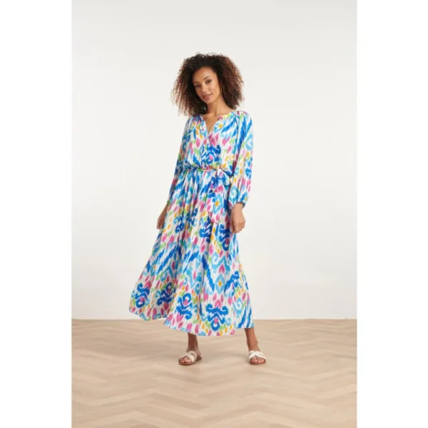 Laat je betoveren door de Smashed Lemon Zwierige Zomer Maxi Jurk, een must-have item van ons dames modemerk dat elegantie en comfort op een prachtige manier combineert. Deze maxi jurk met lange mouwen heeft een knoopsluiting op het bovenste gedeelte en wordt geleverd met een bijpassende riem, waardoor het de perfecte keuze is voor de zomerse dagen. Het kleurrijke tribal print ontwerp, met tinten als kobaltblauw, fuchsia, geel, limoengroen, oranje en aqua, voegt een levendige en vrolijke uitstraling toe aan je zomergarderobe. Gemaakt van duurzaam 100% rayon EcoVero, biedt deze jurk niet alleen een zijdezachte aanraking maar ook een milieuvriendelijke optie voor bewuste fashionista's. De knoopsluiting voegt een vleugje verfijning toe, terwijl de bijpassende riem de taille accentueert voor een flatterende look. Met de Smashed Lemon Zwierige Zomer Maxi Jurk ben je klaar om te stralen met tijdloze stijl, waar je zomerdagen je ook brengen. Kenmerken: - Kleurrijk tribal print ontwerp