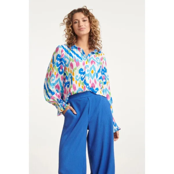 Voeg een vleugje bohemian chic toe aan je garderobe met de Smashed Lemon Tribal Print Blouse. Deze blouse, ontworpen met een kraag en smocked manchetten die een pofmouw creëren, is een meesterlijk stuk van ons dames modemerk dat stijl en comfort moeiteloos combineert. Het kleurrijke tribal print ontwerp, met tinten zoals kobaltblauw, fuchsia, geel, limoengroen, oranje en aqua, geeft een levendige en speelse uitstraling aan deze blouse. Gemaakt van hoogwaardig 100% rayon EcoVero, biedt deze blouse niet alleen een zijdezachte aanraking maar ook een duurzame keuze voor bewuste fashionista's. De kraag voegt een vleugje elegantie toe, terwijl de smocked manchetten een subtiele pofmouw creëren voor een trendy touch. Draag deze Smashed Lemon Tribal Print Blouse met je favoriete broek of rok voor een moeiteloos chique look. Kenmerken: - Kleurrijk tribal print ontwerp voor een levendige en speelse uitstraling - Kraag en smocked manchetten creëren een stijlvolle pofmouw - Gemaakt van