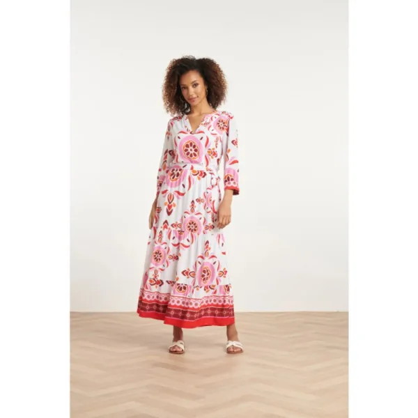 Laat je betoveren door de Smashed Lemon Maxi Jurk, een subliem kledingstuk van ons dames modemerk dat stijl en comfort harmonieus samenbrengt. Deze lichtgekleurde maxi jurk is ontworpen met een cutline in de rok, een diepe V-hals en 3/4 mouwen voor een tijdloze en elegante uitstraling. Het ornamental print ontwerp in roze, rood en oranje tinten voegt een vleugje romantiek toe aan deze jurk. Compleet geleverd met een bijpassende riem, kun je deze jurk naar wens stylen, waardoor het perfect is voor diverse gelegenheden. Gemaakt van 100% rayon EcoVero, biedt deze jurk niet alleen stijl maar ook een milieubewuste keuze. De diepe V-hals voegt een verleidelijk element toe, terwijl de 3/4 mouwen en cutline in de rok een elegante touch geven. Ervaar het ultieme comfort en de tijdloze charme van de Smashed Lemon Maxi Jurk en straal in elke setting. Kenmerken: - Milieubewuste keuze - gemaakt van 100% rayon EcoVero voor duurzame en stijlvolle mode. - V-hals en elegante 3/4 mouwen voor