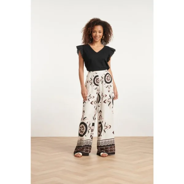 Smashed Lemon 24056 lang flowy broek met ornamentprint | Prijzen