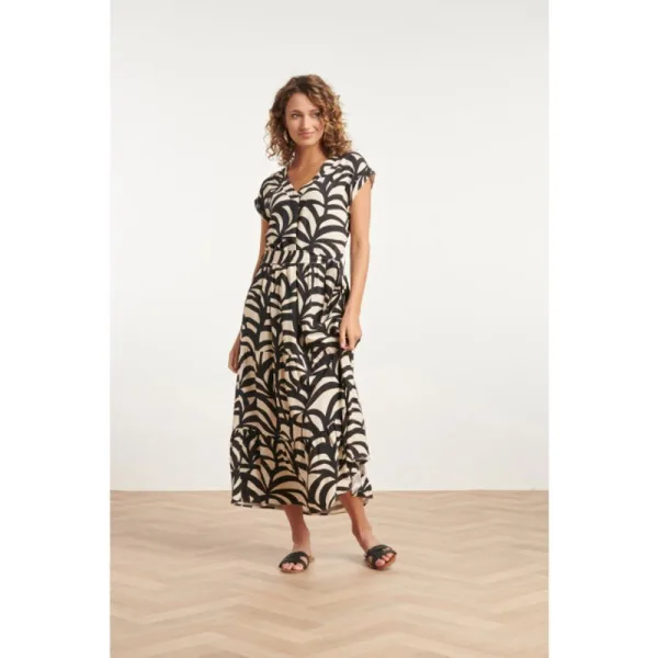 Laat je stralen op het strand met de Smashed Lemon Maxi Jurk, een onmisbaar stuk voor zonnige dagen aan zee. Deze jurk, ontworpen met cutlines voor een flowy volume shape in het rokgedeelte, biedt de perfecte combinatie van comfort en stijl. De V-hals met panelen en korte omgeslagen mouwen voegen een speels element toe aan deze zomerse jurk. Draag het met het bijpassende riempje om je taille te accentueren of ga voor een ontspannen look zonder riem. De zwarte en zandkleurige grafische print voegt een tijdloze elegantie toe aan deze maxi jurk. Gemaakt van 100% rayon, biedt deze jurk niet alleen een zijdezachte touch maar ook een lichte en luchtige draagervaring, perfect voor de warmere dagen. Voel de zomerbries terwijl je straalt in deze prachtige maxi jurk. Kenmerken: - Strand klaar ontwerp maxi jurk met cutlines voor een flowy volume shape, perfect voor zonnige dagen aan zee. - Speelse details V-hals met panelen en korte omgeslagen mouwen voor een trendy en speelse
