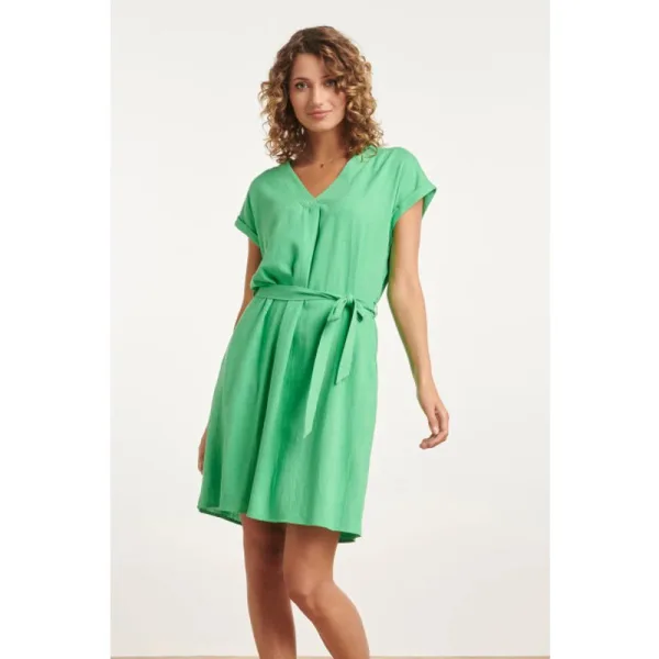 Smashed Lemon 24087 losvallende linnen jurk met v-hals, riemlevendig |