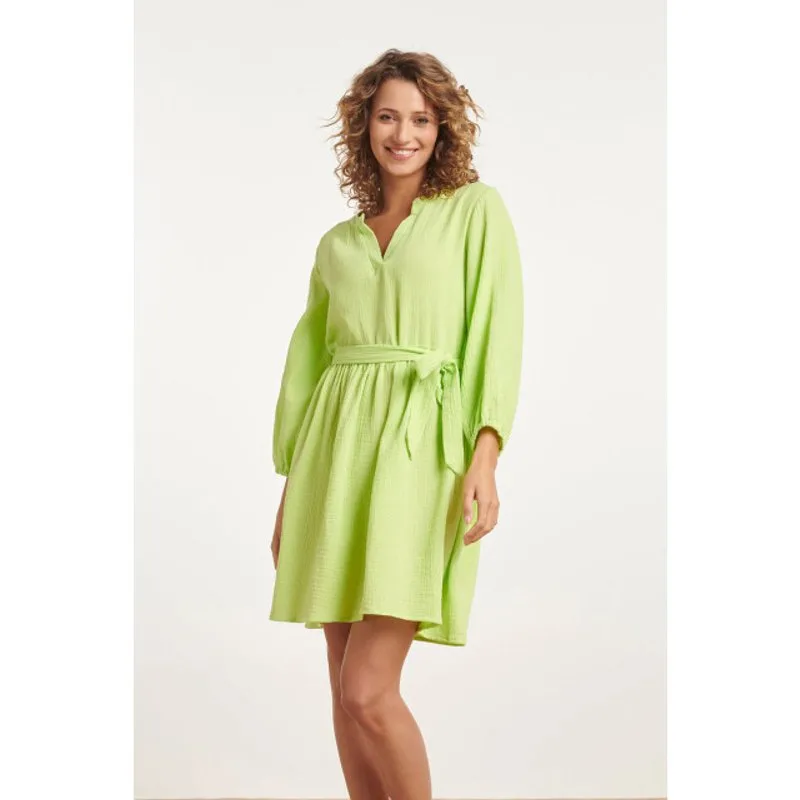 Ontdek het ultieme zomergevoel met het Smashed Lemon Simpele Zomerjurkje in Lime Groen. Dit jurkje is ontworpen voor moeiteloze stijl en maximaal comfort op warme dagen, en voegt een frisse en levendige uitstraling toe aan je zomergarderobe. Gemaakt van 100% katoen en vervaardigd met lichte tetra stof, biedt dit jurkje een luchtige en comfortabele pasvorm. De opvallende lime groene kleur voegt een speels tintje toe aan je look en maakt dit jurkje perfect voor zonnige dagen en vrolijke gelegenheden. Het ontwerp met lange puffy mouwen, een V-hals met een klein platstaand kraagje en een bijpassende riem geeft dit jurkje een vrouwelijke en tijdloze uitstraling. Of je nu naar een zomerse brunch gaat of een ontspannen dagje uit hebt gepland, dit Smashed Lemon jurkje biedt de perfecte balans tussen stijl en comfort. Laat je persoonlijke stijl stralen met het Smashed Lemon Simpele Zomerjurkje in Lime Groen en beleef de zomer in stijl. Kenmerken: - Een levendige kleur voor zomerse vibes.