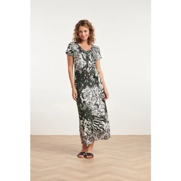 Smashed Lemon 24147 stretch zomerjurkarmy green aztec print | Prijzen