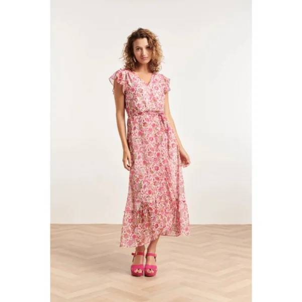 Smashed Lemon 24307 wikkelstijl maxi jurk van chiffon met fuchsialime