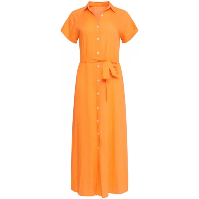 Voeg een vleugje levendigheid toe aan je zomergarderobe met onze Smashed Lemon Oranje Ademende Zomer Shirtjurk. Deze jurk combineert moeiteloos stijl en comfort voor een verfrissende look tijdens warme dagen. De volledig knoopsluiting, kraag en bijpassende riem geven deze jurk een klassieke uitstraling, terwijl de raglan korte mouwen met omgeslagen manchetten een speelse toets toevoegen. Gemaakt van 70% rayon en 30% linnen, biedt deze jurk een ademende en luchtige pasvorm, perfect voor de zomerse temperaturen. Of je nu een dagje gaat winkelen of een lunchafspraak hebt, deze jurk houdt je koel en comfortabel, terwijl je er toch chic uitziet. Combineer het met je favoriete sandalen en een zonnebril voor een moeiteloos stijlvolle look. kenmerken: - Volledige knoopsluiting en kraag voor een klassieke uitstraling - Raglan korte mouwen met omgeslagen manchetten voor een speelse touch - Gemaakt van 70% rayon en 30% linnen voor ademend comfort en duurzaamheid Voeg de Smashed Lemon Oranje Ademende Zomer Shirtjurk toe aan je collectie voor een stijlvolle en comfortabele look deze zomer. Specificaties : Model: 172 cm lang en draagt maat S/36 Style: Dress Pasvorm: Getailleerd Lengte: Midi 0 Country of Origin: Made in P.R.C. Color: oranje No lining Fabric composition: 70% rayon 30% linen Laatste stuks nu voordelig in onze Smashed Lemon outlet
