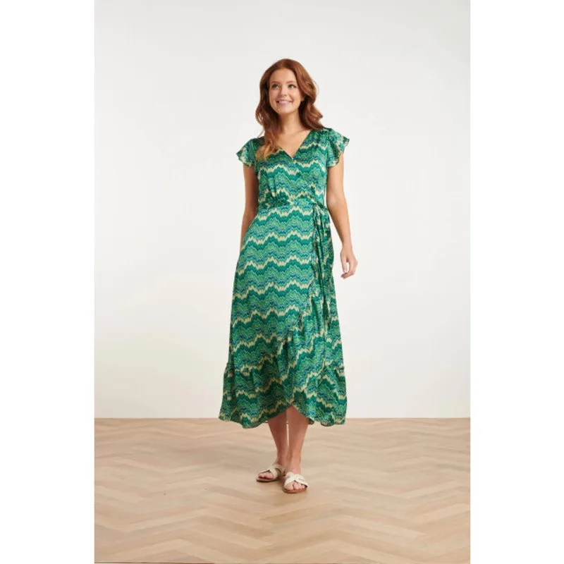 Breng een vleugje zomerse elegantie in je garderobe met onze Smashed Lemon groene satijnen zomerjurk. Deze prachtige jurk is ontworpen in een verfijnde gewikkelde stijl met gestikte details, frivole mouwen en een ruche rondom het rokgedeelte. De bijgevoegde riem benadrukt elegant de taille voor een flatterende pasvorm. De jurk is versierd met een opvallende abstracte print in heldere tinten groen en teal, waardoor je een levendige en trendy uitstraling krijgt. De witte voering zorgt voor extra comfort en verfijning, terwijl de satijnachtige stof een luxueuze uitstraling geeft. Kenmerken: - Groene satijnen zomerjurk met gestikte wrap voor een elegante look - Opvallende abstracte print in heldere tinten groen en teal voor een trendy uitstraling - Voorzien van frivole mouwen, een ruche rondom het rokgedeelte en een riem voor een flatterende pasvorm Voeg deze prachtige zomerjurk toe aan je collectie en straal stijl en verfijning uit tijdens warme zomerdagen. Specificaties : * Model:
