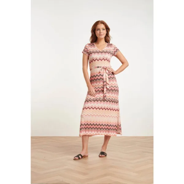 Voeg wat speelse elegantie toe aan je zomergarderobe met onze Smashed Lemon zigzag zomerjurk. Deze jurk is ontworpen met een opvallende zigzag print in prachtige en vrouwelijke kleuren zoals zand, roze en bruin, waardoor het een echte eyecatcher is. Met zijn normale V-hals en korte mouwen straalt deze jurk moeiteloze stijl en comfort uit. De jurk wordt geleverd met een bijpassende riem om je taille te accentueren en een flatterend silhouet te creëren. Gemaakt van hoogwaardig 95% viscose, biedt deze jurk niet alleen een luxe gevoel, maar ook een lichtgewicht en ademend draagcomfort, ideaal voor warme zomerdagen. Kenmerken: - Opvallende zigzag print in vrolijke kleuren zoals zand, roze en bruin - Normale V-hals en korte mouwen voor een tijdloze uitstraling - Wordt geleverd met een bijpassende riem voor een flatterend silhouet Update je zomergarderobe met deze prachtige zigzag zomerjurk van Smashed Lemon en straal de hele zomer door met stijl en flair! Specificaties : * Model: 180