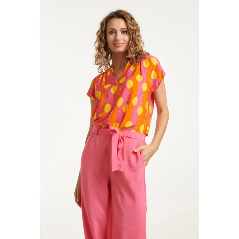 Specificaties: Smashed Lemon 25001 v-hals korte mouw top met citroenstrepen print |