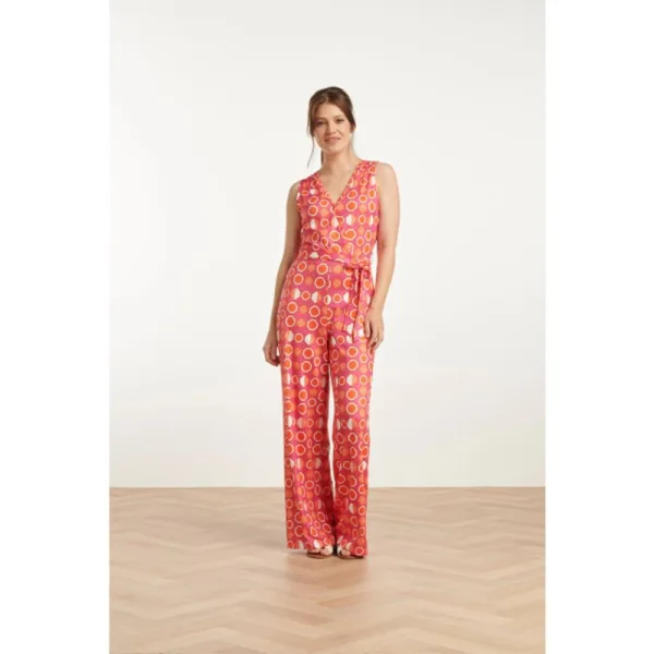 Deze vrolijke, stretchy en mouwloze jumpsuit van Smashed Lemon is de perfecte keuze voor een zonnige dag. Het ontwerp met een levendige, grafische oranje fruitprint in de kleuren roze, oranje, wit en een vleugje rood maakt dit stuk een ware blikvanger. De jumpsuit heeft een elegante V-hals overlappende decolleté, zonder mouwen en wordt geleverd met een bijpassende riem voor een extra accent op je taille. De losse, flowy pasvorm van de pijpen biedt optimaal comfort en vrijheid van beweging. Of je nu een dagje uit gaat of een casual avondje hebt, deze jumpsuit is een veelzijdige keuze die niet mag ontbreken in je zomeroutfits. Maak je look compleet met de frisse kleuren en het speelse ontwerp van Smashed Lemon, een merk dat bekend staat om zijn stijlvolle en eigentijdse mode voor de moderne vrouw. Belangrijkste kenmerken: - Vrolijke, grafische fruitprint in oranje, roze, wit en rood - V-hals overlappend decolleté met bijpassende riem - Losse, flowy fit voor ultiem comfort Met deze