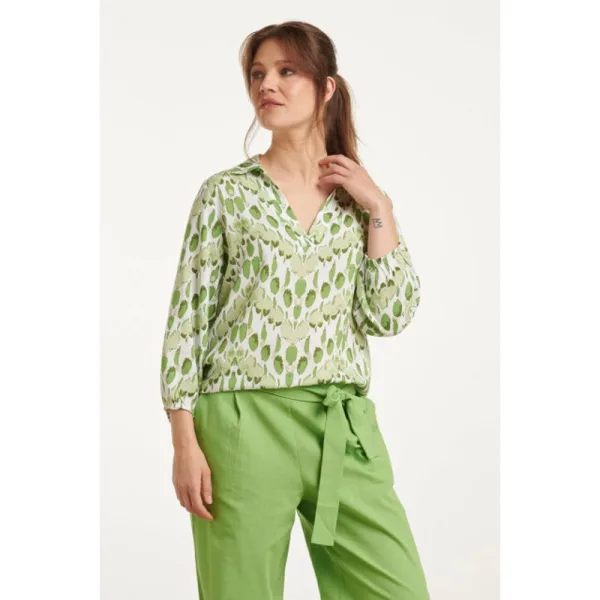 Ontdek de perfecte combinatie van stijl en comfort met de Smashed Lemon V-hals bloes met een opvallende groene slangenprint. Deze top is gemaakt van 100% Rayon Ecovero, een duurzame en ademende stof die je de hele dag comfortabel houdt. De zachte groene en witte slangenprint zorgt voor een speelse, maar toch verfijnde uitstraling, perfect voor elke gelegenheid. De top heeft een elegante V-hals met een klassiek kraagje, wat zorgt voor een chique uitstraling. De 3/4 mouwen met elastische manchetten voegen een subtiele flair toe, waardoor de top zowel casual als gekleed gedragen kan worden. Of je nu een dag op kantoor hebt of een avondje uit gaat, deze veelzijdige top past zich moeiteloos aan jouw stijl aan. Belangrijkste kenmerken: - Duurzaam en comfortabel dankzij 100% Rayon Ecovero - V-hals met een stijlvolle kraag en 3/4 mouwen met elastische manchetten - Moderne groene slangenprint voor een opvallende en verfijnde look Voeg de Smashed Lemon V-hals bloes met slangenprint toe aan je