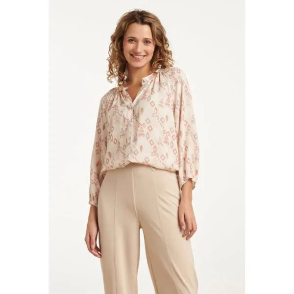 Smashed Lemon 25043 v-hals blouse met aztec printnude tinten | Prijzen