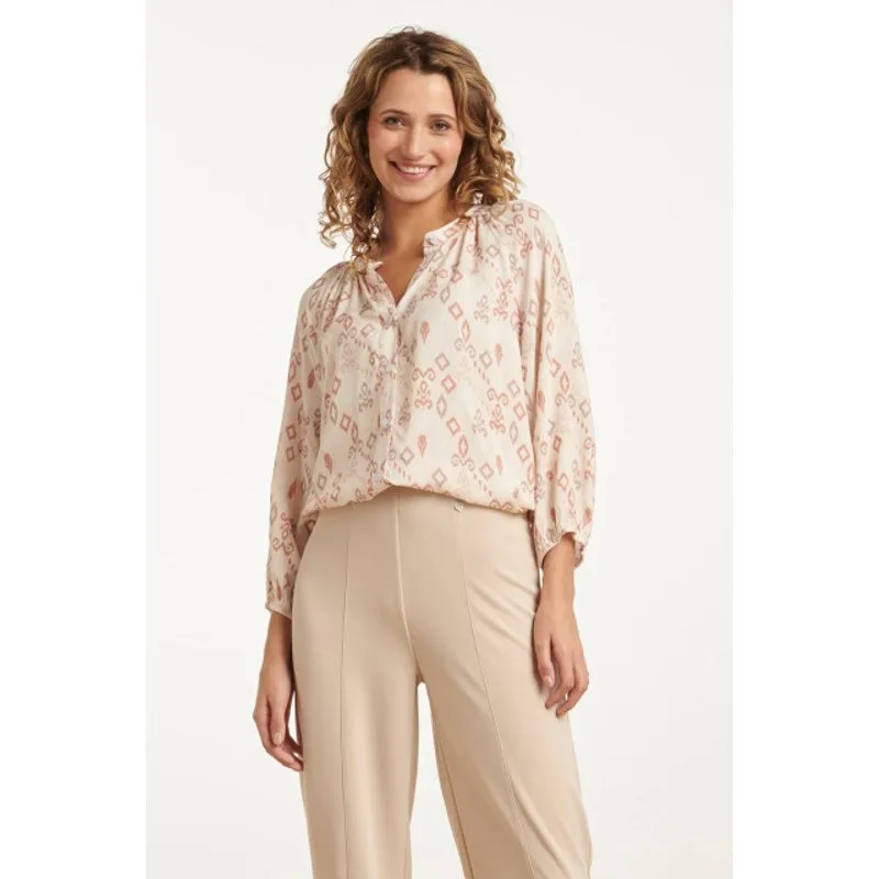 Smashed Lemon 25043 v-hals blouse met aztec printnude tinten |
