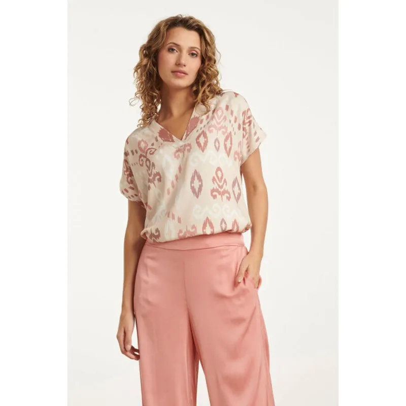 Smashed Lemon 25045 v-hals paneel top met een groot aztec print-nude tinten |