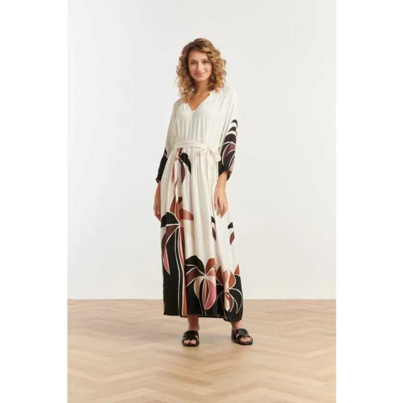 Smashed Lemon 25057 off white flowy maxi jurk met mauve...