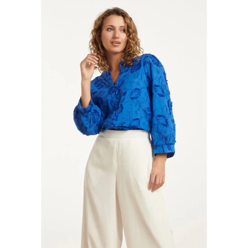 Voeg een vleugje elegantie toe aan je garderobe met de Smashed Lemon dames Cobalt Blauwe 3D Bloemen Blouse. Deze unieke blouse is gemaakt van een speciaal bloemen geborduurde katoen, waardoor de stof een prachtige 3D-textuur krijgt. De blouse heeft een losse pasvorm en is voorzien van 3/4 mouwen met brede manchetten, wat zorgt voor een luchtige en moderne uitstraling. De V-hals met bedekte knopen loopt van de borst tot de onderkant van de blouse, wat de vrouwelijke vorm flatteert. Perfect te combineren met zowel casual als chique outfits! Belangrijkste kenmerken: - 3D bloemenborduurwerk voor een luxe textuur - Losse pasvorm en 3/4 mouwen met brede manchetten - Gemaakt van 100% katoen voor een comfortabele pasvorm Met de Smashed Lemon Cobalt Blauwe 3D Bloemen Blouse voeg je een stijlvolle en verfijnde uitstraling toe aan je dagelijkse look.Specificaties : * Stijl: blouses * Print: Bloemen * Pasvorm: Losvallend * Lengte: Kort * Model is : 175 cm tall and wears size S/36 *