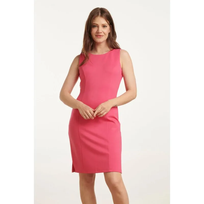 Smashed Lemon 25145 roze mouwloze getailleerde jurk