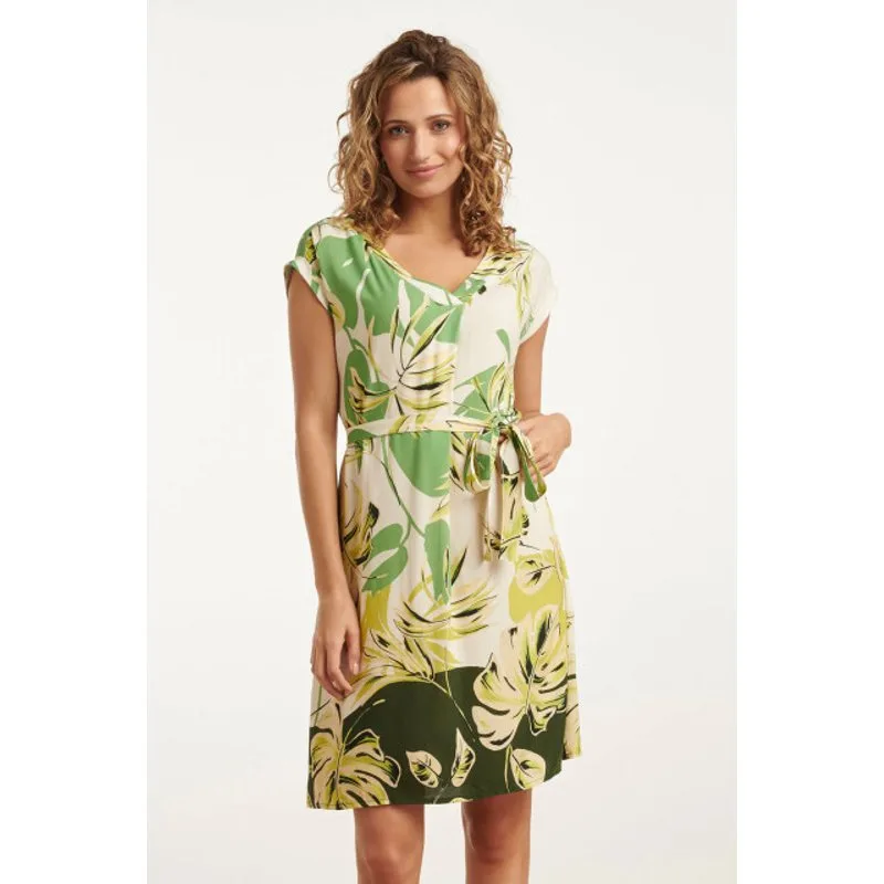 Smashed Lemon 25162 off white bladprint jurk met v-hals |