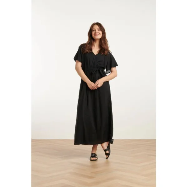 Ontdek de perfecte balans tussen comfort en stijl met de Smashed Lemon zwarte viscose midi jurk. Deze elegante jurk is gemaakt van 100% viscose, waardoor hij heerlijk soepel en ademend aanvoelt. Het ontwerp heeft een verfijnde V-hals met verstelbare koorden die eindigen in een speelse kraal, wat de jurk een subtiele, moderne flair geeft. De elastische taille zorgt voor een vrouwelijke, flatterende pasvorm, terwijl de bijpassende riem het geheel compleet maakt. De jurk heeft een losse fit en korte, wijde mouwen, wat het ideaal maakt voor warme dagen of een casual uitje. De veelzijdigheid van deze midi jurk maakt het een must-have in jouw garderobe. Combineer het met sneakers voor een casual look of met hakken voor een avondje uit – de mogelijkheden zijn eindeloos! Belangrijkste kenmerken: - V-hals met verstelbare koorden en kraal aan het einde - Elastische taille en bijpassende riem voor een perfecte pasvorm - Losse fit met korte, wijde mouwen voor ultiem comfort Deze Smashed Lemon midi