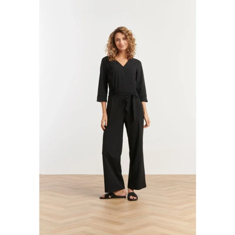 Deze stijlvolle zwarte jumpsuit van Smashed Lemon is een must-have voor elke garderobe. Ontworpen in een elegant silhouet, heeft deze jumpsuit een vrouwelijke V-hals met overslag die stopt bij de taille, waardoor een flatterende pasvorm ontstaat. De 3/4 mouwen voegen een verfijnde touch toe, terwijl de bijpassende ceintuur je taille accentueert voor een vrouwelijk silhouet. De rechte pijpen zorgen voor een moderne en tijdloze look, perfect voor zowel casual als chique gelegenheden. Dankzij de hoogwaardige travel quality stof geniet je van ultiem comfort: deze jumpsuit is ademend, kreukvrij en heeft een 4-way stretch voor optimale bewegingsvrijheid. Kortom, een perfecte combinatie van stijl en functionaliteit! Belangrijkste kenmerken:- Comfortabele travel quality stof – ademend, stretch en kreukvrij- Elegante V-hals en 3/4 mouwen – stijlvol en tijdloos- Veelzijdig te stylen – perfect voor werk, reizen en avondjes uitSpecificaties : * Stijl: jumpsuits * Print: Uni * Pasvorm: