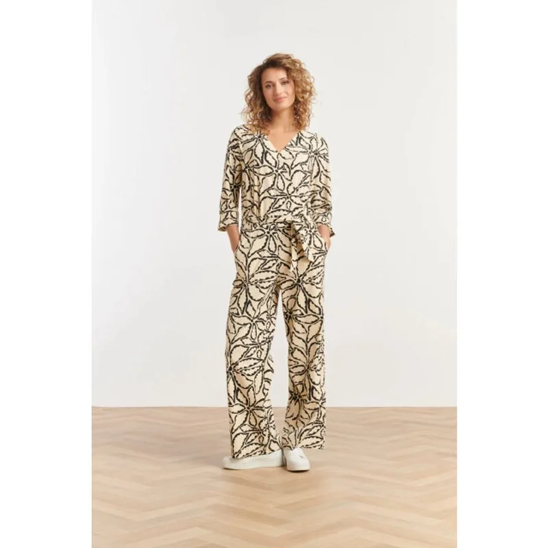 Ga stijlvol en comfortabel de deur uit met deze prachtige Smashed Lemon jumpsuit met een elegante zand en zwarte bloemenprint. Deze veelzijdige jumpsuit is ontworpen met een vrouwelijke V-hals overslag, die stopt bij de taille voor een flatterend silhouet. De 3/4-mouwen geven een verfijnde uitstraling, terwijl de bijpassende ceintuur je taille accentueert voor een mooie pasvorm. De rechte pijpen zorgen voor een tijdloze en stijlvolle look, perfect voor zowel casual als chique gelegenheden. Dankzij de travel kwaliteit stof geniet je van ultiem draagcomfort: de stof is ademend, heeft 4-way stretch voor optimale bewegingsvrijheid en is gemakkelijk in onderhoud. Geen kreukels, geen gedoe – altijd moeiteloos stijlvol met Smashed Lemon. Belangrijkste kenmerken: - Gemaakt van hoogwaardige travel kwaliteit: ademend, stretchy en kreukvrij- Stijlvol design met een zand en zwarte bloemenprint- Comfortabele pasvorm met een rechte pijp en ceintuur voor een vrouwelijk silhouetSpecificaties : *