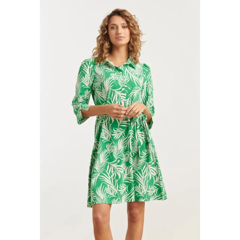 Smashed Lemon 25246 te jurk met bladerenprinttravelkwaliteit