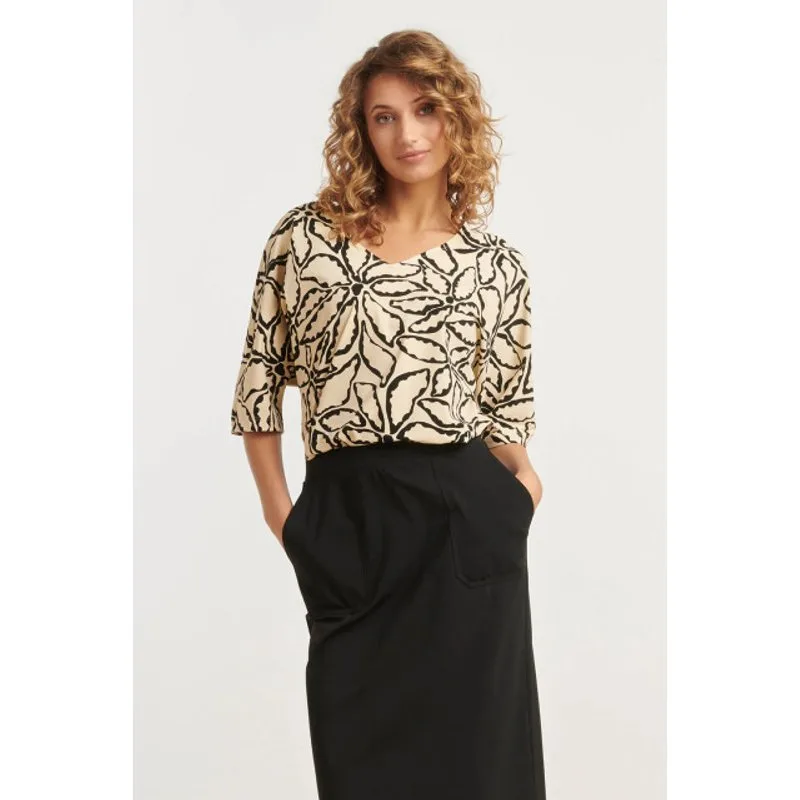 Voeg een vleugje stijl toe aan je garderobe met het prachtige Smashed Lemon top in een zand- en zwart bloemenprint. Dit top is perfect voor elke gelegenheid en biedt zowel comfort als flair. Het is ontworpen met een elegante V-hals en heeft een losse pasvorm die je een ontspannen en verfijnde uitstraling geeft. De 3/4 mouwen hebben een ruime, wijde fit, wat zorgt voor een luchtige, moderne look. De travel quality stof is ideaal voor vrouwen die onderweg zijn. Deze ademende stof biedt ultiem comfort en flexibiliteit dankzij de 4-way stretch, waardoor het top altijd in vorm blijft, ongeacht de situatie. Bovendien is het onderhoudsvriendelijk, kreukvrij en eenvoudig te verzorgen, zodat je er altijd op je best uitziet, of je nu aan het werk bent of een weekendje weg gaat. Dit top van Smashed Lemon is de ideale keuze voor elke modebewuste vrouw die zowel stijl als gemak waardeert. Belangrijkste kenmerken: - Travel quality stof: ademend, 4-way stretch en onderhoudsvriendelijk - Losse pasvorm