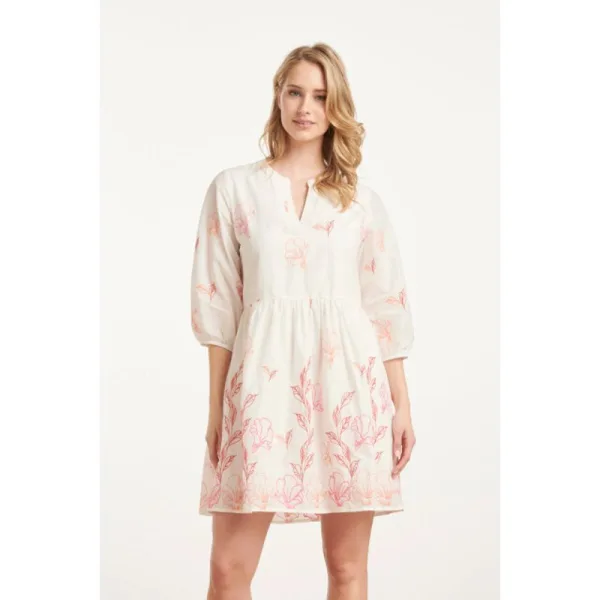Smashed Lemon 25263 te bloemen geborduurde korte jurk met vhals