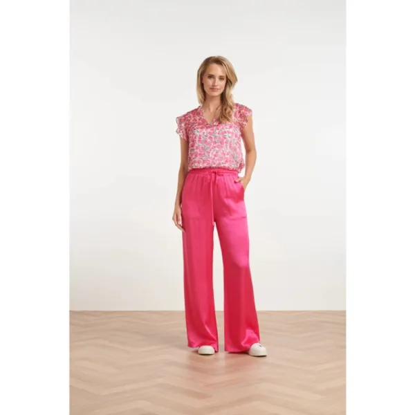 Ontdek de stijlvolle en comfortabele fuchsia satijnen broek van Smashed Lemon, een must-have voor jouw garderobe. Deze broek heeft een elastische tailleband met drawstrings, waardoor je de pasvorm eenvoudig kunt aanpassen. Het brede, rechte model zorgt voor een flatterende en relaxte fit, ideaal voor zowel casual als elegante looks. Gemaakt van 54% viscose en 46% rayon, voelt de stof zacht en luxueus aan op de huid, terwijl het de hele dag door ademend blijft. Combineer deze satijnen broek met een strakke top of een oversized blouse voor een modieuze outfit die opvalt. De veelzijdigheid van deze broek maakt het een uitstekende keuze voor verschillende gelegenheden, van een dagje uit tot een chique avondje. Belangrijkste kenmerken: - Fuchsia kleur voor een opvallende look - Elastische tailleband met drawstrings voor een verstelbare pasvorm - Gemaakt van 54% viscose en 46% rayon voor een luxe en ademende stofSpecificaties : * Stijl: broeken * Print: uni * Pasvorm: wijde pijpen